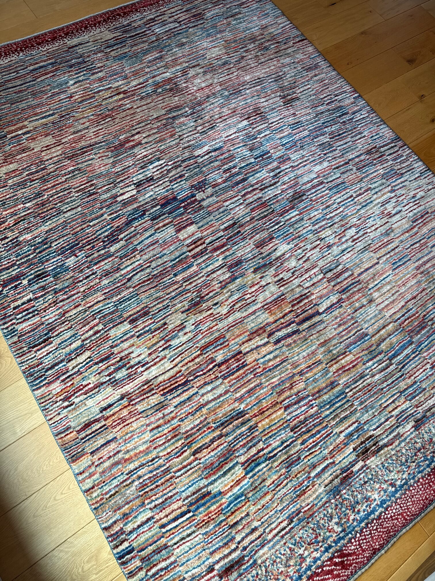 戻ったギャッベを敷いて、触った瞬間、手触りの違いに驚きました。